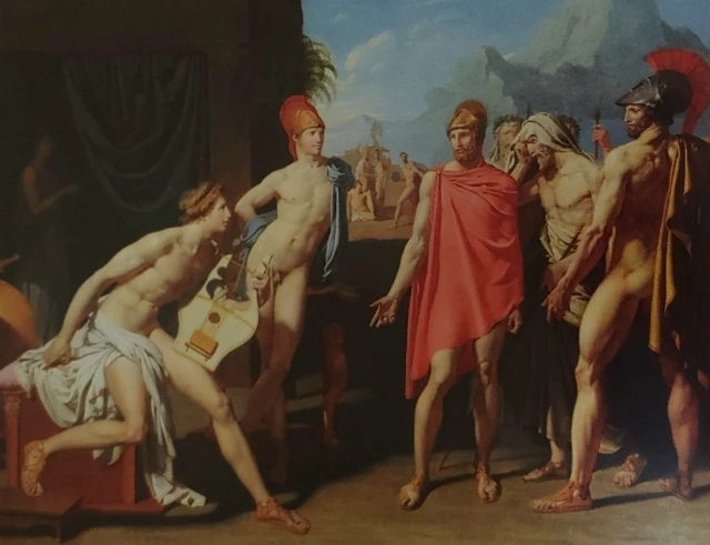 아가멤논의 사절단을 맞이하는 아킬레우스.