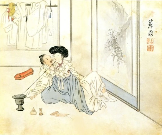 특히 신윤복의 속화에는 남녀간의 애정관계가 소재로 두루 다뤄지고 있는데, 남녀관계에 있어선 양반, 기생, 중인, 노비, 스님 등 계급 간의 격차는 물론이고 노소의 구분마저도 두지 않고 다양하게 표현하고 있습니다.