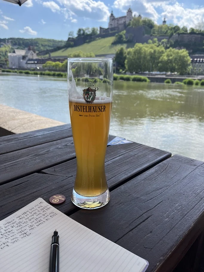 일기를 써야지, 생각만 하다 이제야 제대로 일기장을 편다. 오늘은 원래 Bad Kissingen을 가려다 교수님들께 메일을 쓰면서 기차 시간을 자꾸 놓쳐 간단히 기차로 20분여 걸리는 Ochsenfurt를 다녀왔다가 쨍한 햇볕에 한껏 지쳐 돌아와 강가 근처의 한 노상에서 맥주를 냅다 들이붓고 있다. 시원한 것이 목을 타고 넘어가니 한결 더위가 가신다.