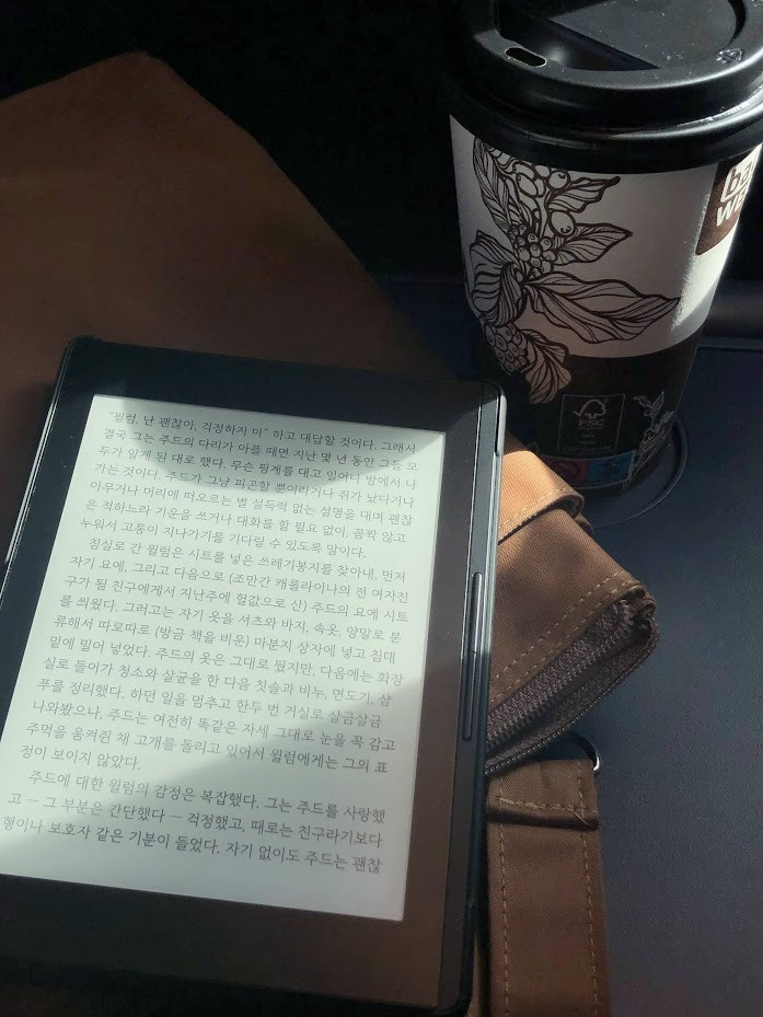 친구들보다 하루 일찍 일정을 시작한 첫째 날, 출발지인 독일의 내가 사는 곳에서 경유지로 독일의 마인츠Mainz, 도착지는 이탈리아의 몬짜Monza라는 곳이다. 밀라노Mailand로 가는 비행기는 4시가 넘어서야 뜨는데, 예매한 라이언에어의 비행장이 Frankfurt Hahn 공항에 있어 프랑크푸르트 중앙역에서 또 거진 2시간 정도를 가야 했고 그마저도 셔틀 버스가 자주 있지 않아 이른 아침부터 열차를 타고 우선 셔틀 버스 정거장으로 가야했다. 기차에 올라타고 나서야 바보같이 2장의 자리를 예매했다는 사실을 알게 되었지만, 이용객이 많았던 건지 역무원과는 마주치지도 못해서 환불 얘기는 꺼내지도 못하고 짐가방을 옆자리에 앉혀 괜히 가방만 호사를 누린 기차 여정이었다(...). 떠나면서부터 역경이 예상된다. 역내에서 산 커피와 빵으로 이른 아침 여정의 노곤함을 깨우며 바로 전날 결제했던 한야 야나기하라의 <리틀 라이프>를 읽기 시작했다. 짐을 최소화하고 싶어서 아이패드 대신, 독일에 오기 전 J가 선물로 주었던 이북리더기를 처음 개시하여 들고 왔는데 비행기고 기차고 뭐고 다 딜레이가 되었던 상황 속 결과적으로 동무가 되어주었던 이 녀석을 가져오길 잘했다.