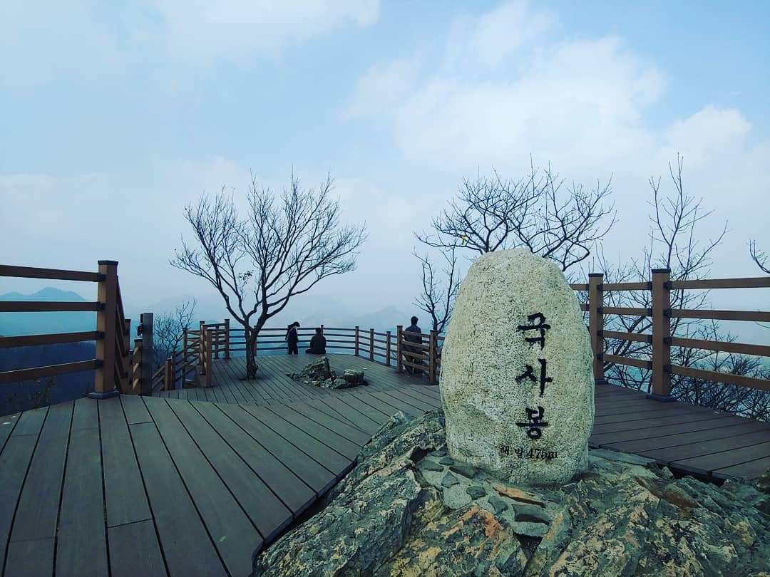 20분쯤 오르니 외앗날 전망대가, 40분쯤 오르니 국사봉 정상 표지석이 나타났다. 두 곳 모두 외앗날을 내려다보기 좋은 위치다. 해맞이 관광객이나 등산객이 한꺼번에 몰려드는 상황도 염두에 두었는지 바닥에 목재를 깔아 널찍하고도 안전하게 잘 정비했다. 전망대 가장자리는 깎아지르는 듯한 벼랑이라서 아찔한 느낌이 들지만, 난간을 붙잡고 서면 시원한 미풍이 얼굴에 와 닿는다. 햇볕도 알맞게 따사롭다. 어느결에 마음의 긴장이 풀렸는지 난간에 기대 외앗날을 내려다보고 있는 나를 발견했다. 그러다 더 놀라운 것을 발견했다. 붕어섬 안에 붉은 벽돌로 지은 집 한 채가 보였다. 집 주위로 신경 써서 조경한 나무들과 너르게 잘 관리한 땅도 보였다. 물에 갇혀 고립돼 보였던 붕어섬은 농사도 짓고 꽃도 가꾸는 곳이었던 것이다. ‘와, 저기 사람이 사는구나. 누굴까? 어떻게 건너갔지?’ 사람의 집이 그림처럼 들어앉아 있는 모습을 보니 신비가 손안에 잡히는 기분이다.