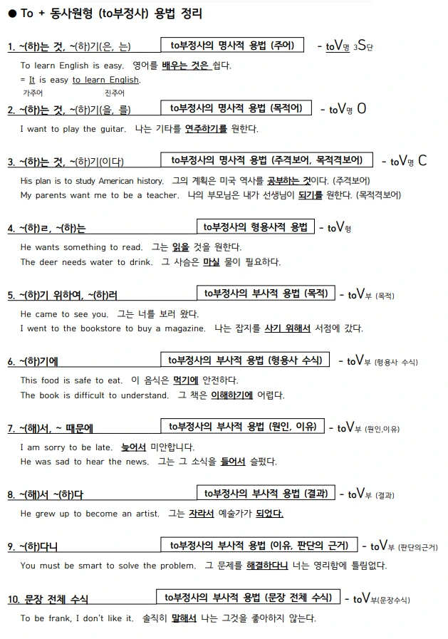 위의 표에서 볼 수 있듯, To 부정사는 크게