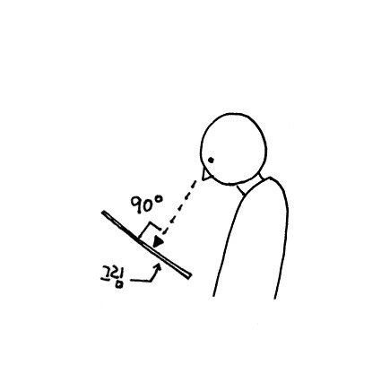 6. 종이/캔버스와 시각의 각이 수직이 되는 게 좋습니다. 이렇게! ↓