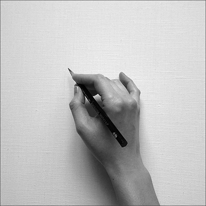 아마 대부분 이 자세가 익숙하실 겁니다. 손을 떼고 새끼손가락을 그리는 면에 살짝 대면 연필선이 덜 번지고 안정감이 있어요.