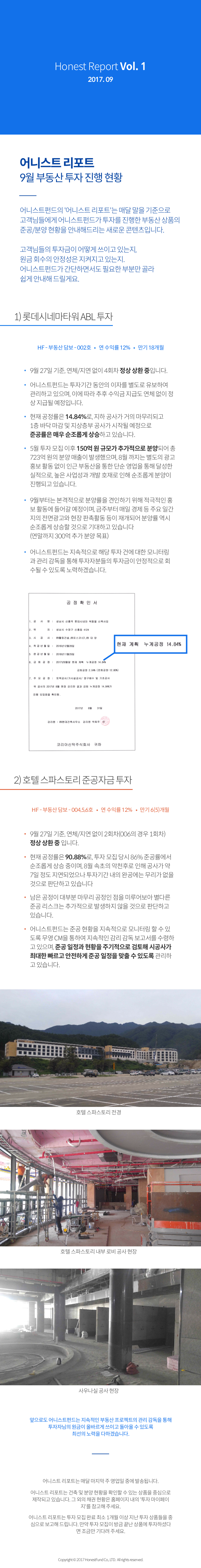 고객님이 투자하셨던 부동산 담보 상품의 건축 및 분양 현황을 알려드립니다