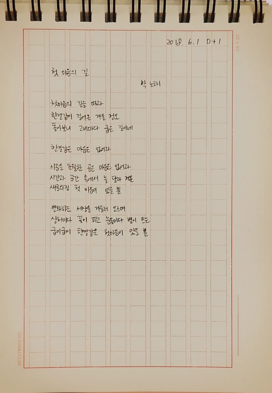 줄간격과 곧게 쓰는 연습을 해야할 것 같다.