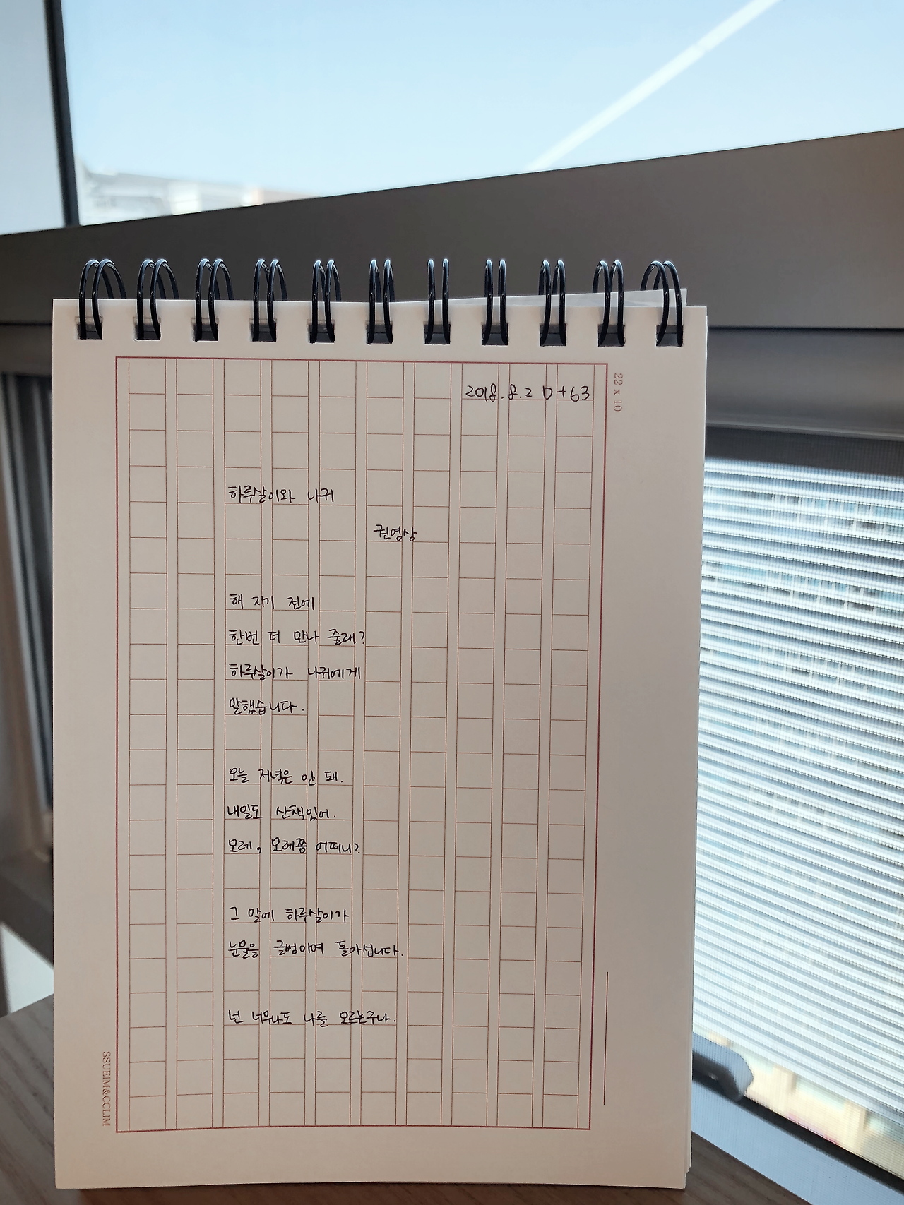 이 짧은 시를 쓰는데 펜이 안 잡혀서 혼났다.