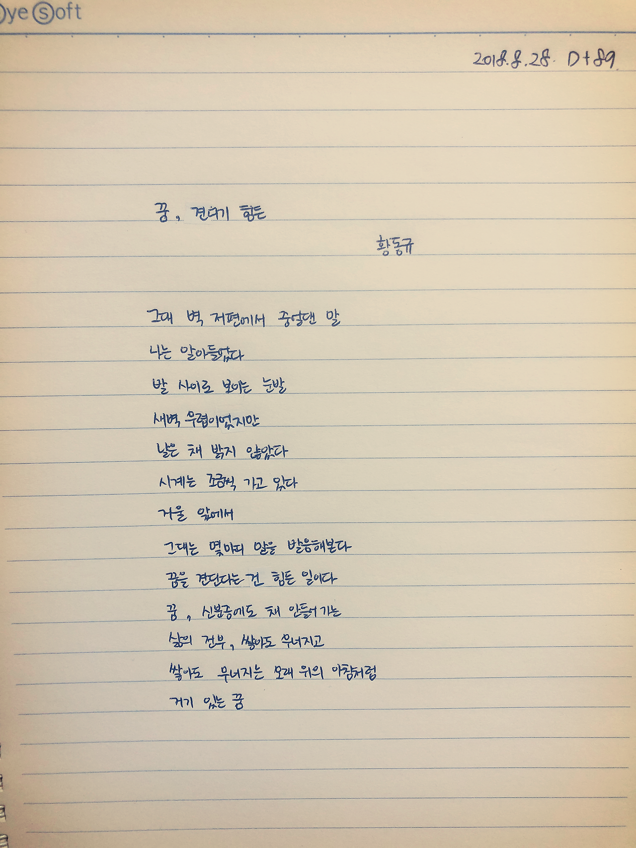 #089 꿈, 견디기 힘든 - 황동규