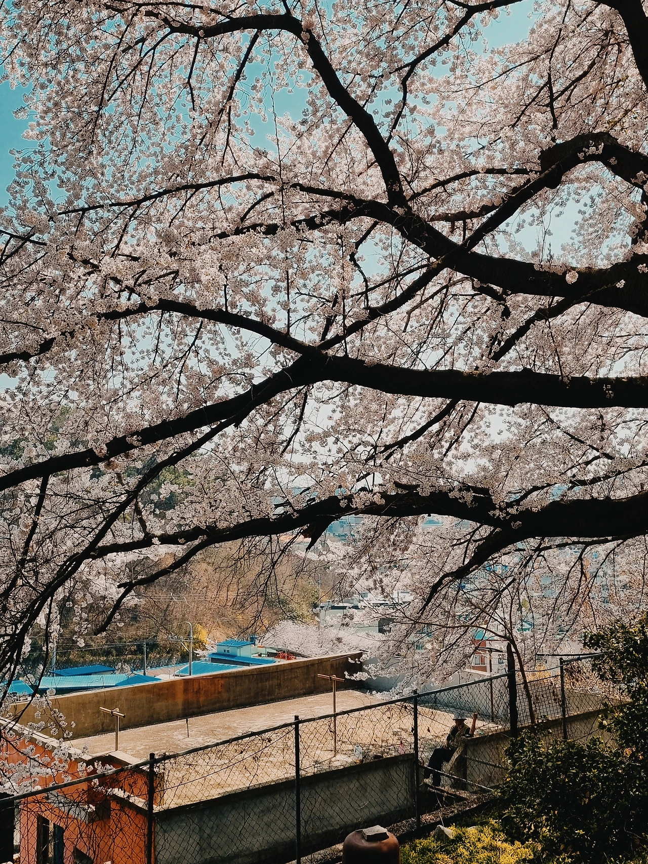 현지인 E는 이곳이 어려서부터 늘 걷던 곳이었기 때문에 얼마나 좋은지 몰랐다고 말했습니다. 벚꽃이 예쁘다는 다른 지역에 놀러갔는데 그닥 감흥이 없어서 그제서야그 가치를 알았다 합니다. 오래된 벚나무가 아름다운 월명공원의이야기입니다.