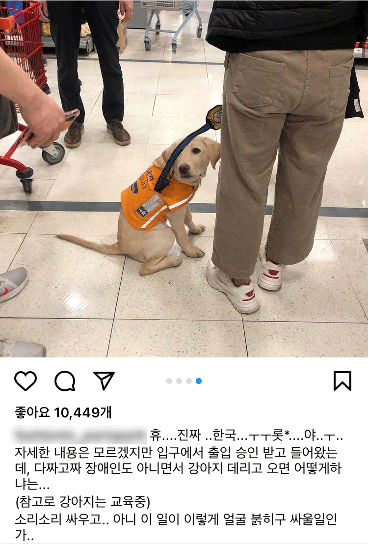 2020년 11월의 마지막날에 저의 눈을 끈 뉴스는 마트에서 쫓겨난 시각장애인 안내훈련견 강아지와 자원봉사자에 대한 이야기였습니다. 자신 때문에 누군가 화가 나서 소리치고 있다는 것을 다 알고 기가 죽은 강아지의 표정이 몹시 마음을 아프게 했어요. 많은 사람들이 그랬을거고, 저처럼 많은 사람들이 화가 났습니다. 문제의 당사자인 롯데마트는 사과문을 올렸죠.