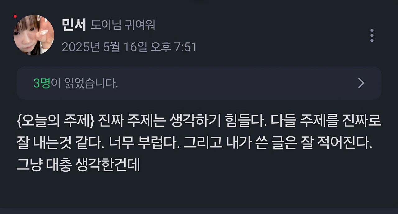 “이 주제가 너무 별로일까 봐 고민했어요.”