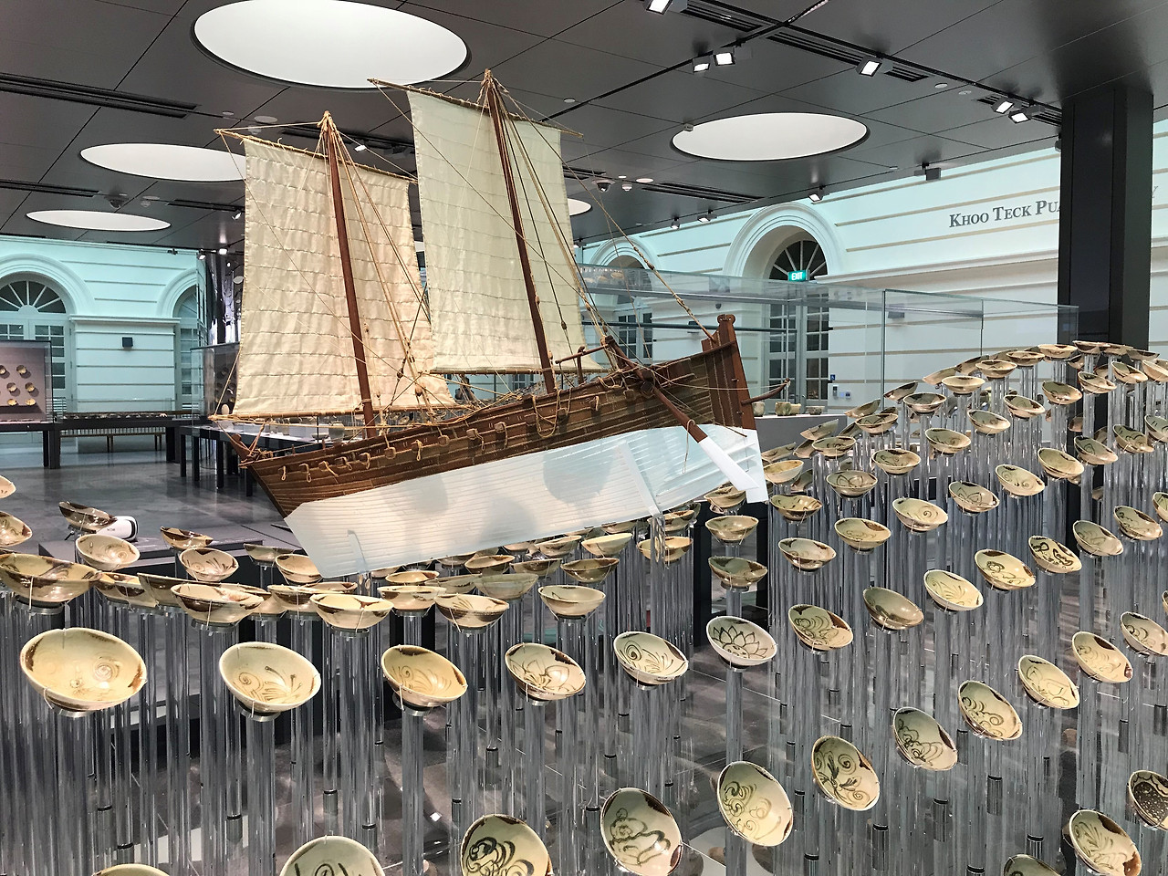 그런데 이 흥미로운 전시 앞에서 감탄하다 보면 이런 질문이 떠오른다. 왜 싱가포르 정부는 중국을 떠나 항해하다가 인도네시아 앞바다에서 가라앉은 아랍 배를 자기네가 전시하는가? 천 년 전부터 중계무역과 문화교류의 주요 통로로 동양과 서양, 동아시아와 서아시아를 "연결"하는 것이 이 나라의 정체성이었다는 것을 안팎으로 보이기 위해서이다.