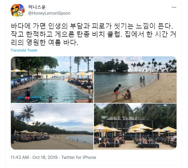 멋진 해변도 기막힌 노을도 없었지만 동네 바닷가 같은 소박한 느낌이 좋았다. 반나절 쯤 놀다가 택시를 불러 타면 20분 만에 집에 돌아갈 수 있다는 것도 좋았고. 계절의 변화가 없으니 내년 여름까지 기다릴 필요 없이 아무때나 다시 올 수 있는 것도 좋았다. 한 때 좋았던 바로 그 이유 때문에 이젠 센토사가 지겨워졌다니, 변한 건 바다가 아니라 나였네.