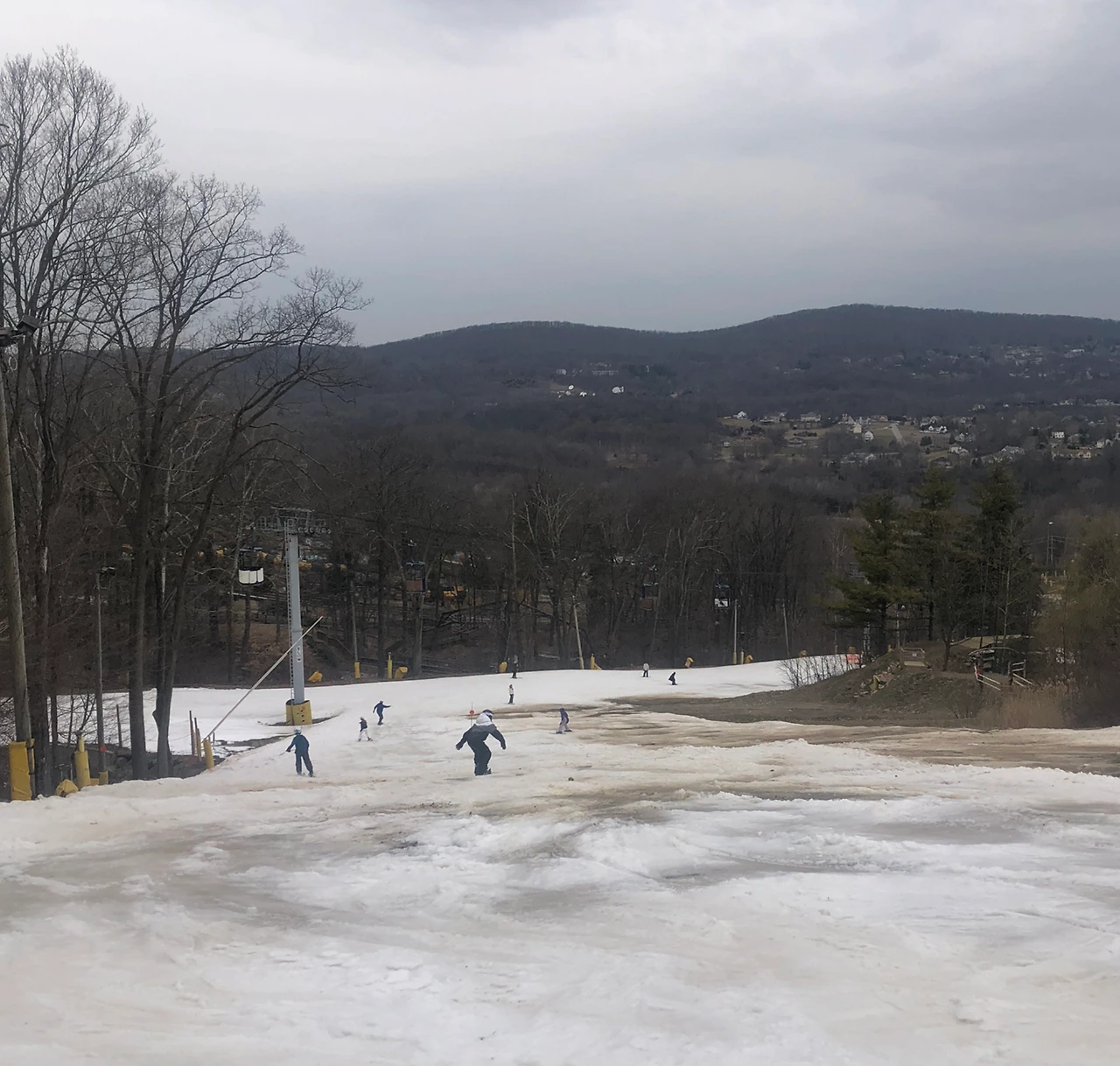 우리는 계획대로 스키장에 갔다. 다행히 눈이 조금 남아 있었다. 제대로 운영하는 리프트는 딱 두 개. 그 중 하나는 초보자용 매직카펫이었으니 실제로는 리프트가 하나였다. 직원들도 얼른 문 닫고 집에 가고 싶은지, 다들 전화기만 들여다보면서 리프트 티켓도 거의 확인하지 않았다. 이번 주말을 마지막으로 시즌을 끝낸다고 한다.