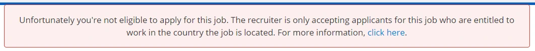 구직사이트 리드에서 공고와 함께 뜨는 메세지. 영국에서 일할 자격이 있는 사람만 지원이 가능하며, 지원이 불가하다는 내용이다. 그럼에도 비자가 필요한 다른 구직자들과 비교했을 때 나의 강점은 영국에 있어서 면접이 바로 가능했고, 영국에서 일한 경력이 었었다는 것이다. 다행히 비자를 지원해줄 수 있다는 회사에 면접을 몇 번 보게 되었다. 각각의 면접에서 받는 느낌은 한결같았다. 회사에서 나에게 비자를 해주는 만큼 나는 받는 월급보다도 플러스알파를 더 해야 한다는 것이다. 추가 수당이 없는 야근을 자주 해야 한다든가, 나에게 벅찬 업무를 주려했다. 운이 좋게 면접을 봤던 회사 중에 두 군데에 합격을 했고, 그래도 가장 나랑 잘 맡겠다고 생각한 회사와 비자 준비를 하고 있다.