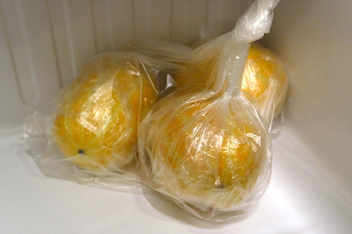 참외를 싱싱하게 보관하기 위해서는 수분 증발을 최대한 막아야 하는데요. 랩으로 감싼 후, 비닐봉지에 다시 넣어주면 효과를 볼 수 있습니다.