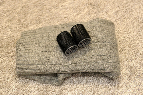옷의 보풀이 있는 부분을 평평하게 펴고, 보풀 위에서 헤어컬을 양옆으로 굴려주기만 하면 제거할 수 있습니다.