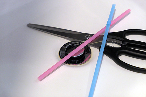 머리카락이나 이물질 때문에 막힌 세면대는 빨대를 통해 응급처치가 가능한데요. 가위나 칼로 사선 방향의 홈을 여러 개 만듭니다. 빨대에 여러 개의 홈을 만드는 이유는 세면대 배수관에 있는 이물질을 홈을 통해 걸러 내기 위함인데요. 홈을 다 만들었다면, 세면대 앞으로 이동합니다.