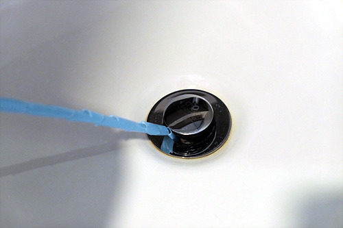 세면대 뚜껑 사이의 틈으로 빨대를 깊숙하게 넣습니다. 그리고 빨대의 끝부분을 잡고 위 아래로 흔들어주면 되는데요. 최대한 여러 번 흔들고 빨대를 다시 꺼내면 세면대를 간단하게 뚫을 수 있습니다.