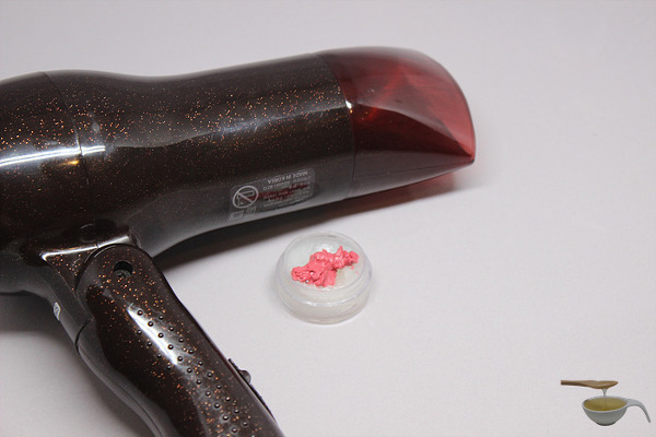 드라이기를 통해 녹이는 과정을 진행해야 하는데요. 20초~30초 정도 열을 가해주면 녹으면서 립스틱과 바세린을 섞어줄 수 있습니다.