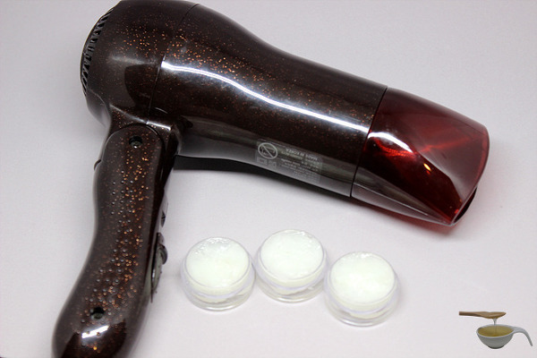 용기에 담은 바세린을 드라이기로 녹여주는 과정을 진행합니다. 20~30초면 순식간에 녹는 모습을 눈으로 확인할 수 있습니다.