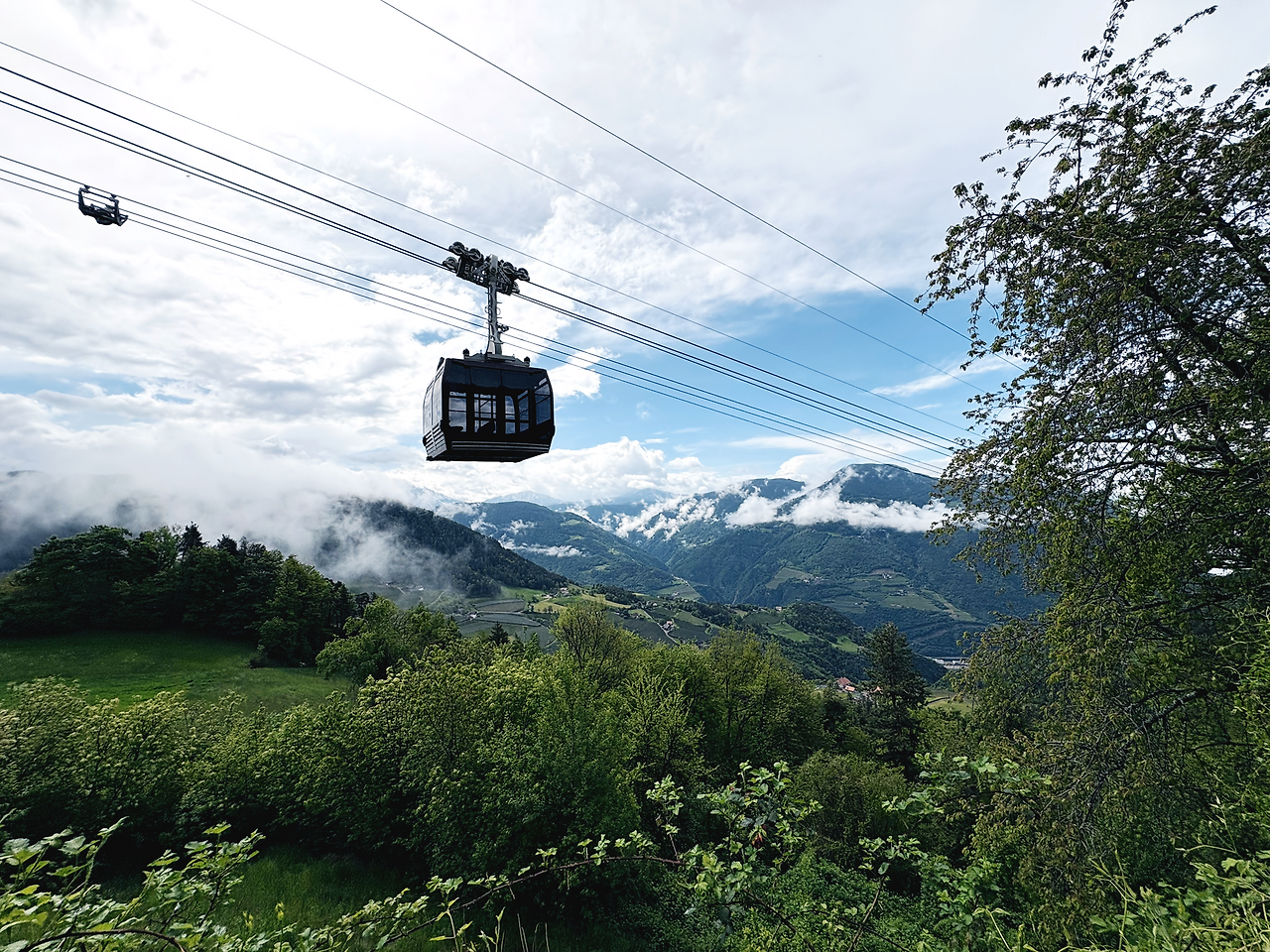 일기예보 대로 오늘은 볼차노에 비가 왔다. 그래도 엄청나게 많이 오지는 않아서 우산을 쓰고 볼차노 시내로 향했다. 케이블카랑 열차는 볼차노에 와서 첫날 산 3일짜리 시내교통 티켓으로 탈 수 있었다. 케이블카를 타면 바로 돌로미티의 엄청난 자연경관과 볼차노 시내가 바로 발아래로 펼쳐진다. 케이블카는 꽤 오랫동안 이동해서 케이블카에서 보이는 풍경에 너무 감탄했다. 비도 조금씩 내리고 이른 아침이라 케이블카를 독점해서 탈 수 있어서 운치도 있고 좋았다. 케이블 카를 타고 내리면 소프라볼차노 지역에 도착한다. 거기서 바로 작고 귀여운 기차를 타고 창 밖에 보이는 풍경을 보는 맛이 있었다. 종점까지 갔다가 열차를 타고 다시 소프라볼차노에 볼 것이 있어서 돌아왔다.