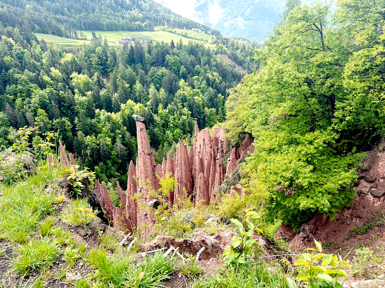 왜냐하면 지구 피라미드 가는 길 중간중간 정말 멋들어진 풍경을 볼 수 있었다. 아마 그냥 소프라볼차노만 구경하고 돌아갔다면 보지 못했을 풍경이다. 그동안 여행하면서 멋진 풍경을 꽤 봤지만 볼차노 돌로미티 이곳 풍경이 단연 최고였다. 비가 조금 왔던 날씨라 그런지 가는 길에 사람은 하나도 없었고 오롯이 풍경을 즐길 수 있었고 하늘도 맑았고 푸릇푸릇한 풍경에 압도되었다. 이렇게 좋은 풍경을 볼 수 있어서 너무 감사했다.