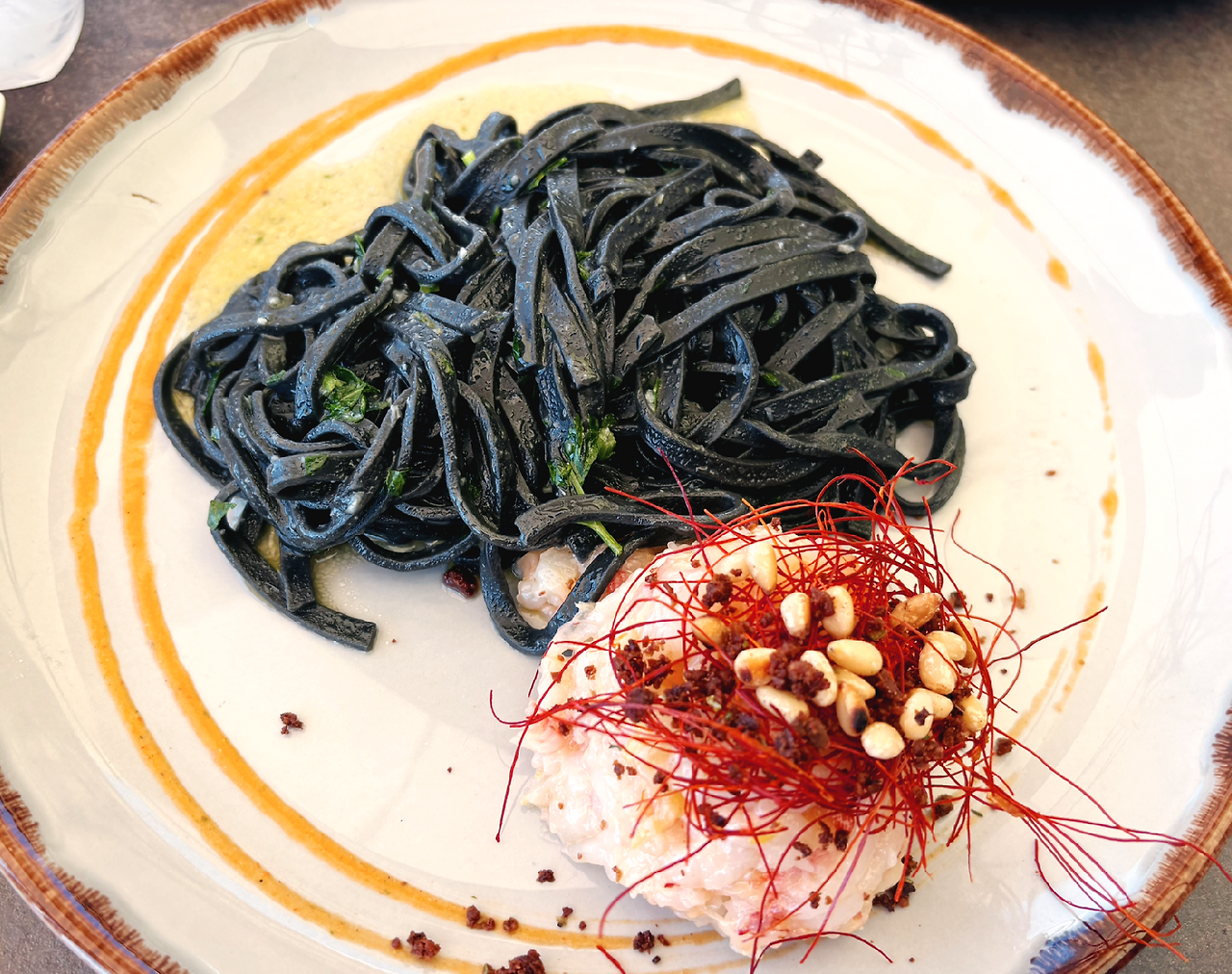 점심은 베르나차에 전망이 좋은 식당으로 가기로 해서 베르나차로 이동했다. 베르나차에 전망이 좋은 식당에 가서 해산물 파스타를 먹었다. 싼 값은 아니지만 그래도 전망값을 받을만했다. 식당에서 지평선 너머 넘실거리는 바다, 작은 항구와 정박한 배들과 마을이 한눈에 보였다. 해산물 파스타 2개를 시켰는데, 오징어 먹물로 만든 파스타면의 요리는 특히 맛있었다. 풍경을 좀 더 즐기기 위해 식사 후에 디저트로 티라미수와 에스프레소도 먹었다. 날씨가 덥지도 춥지도 않은 딱 적당한 날씨라 아주 좋았다.