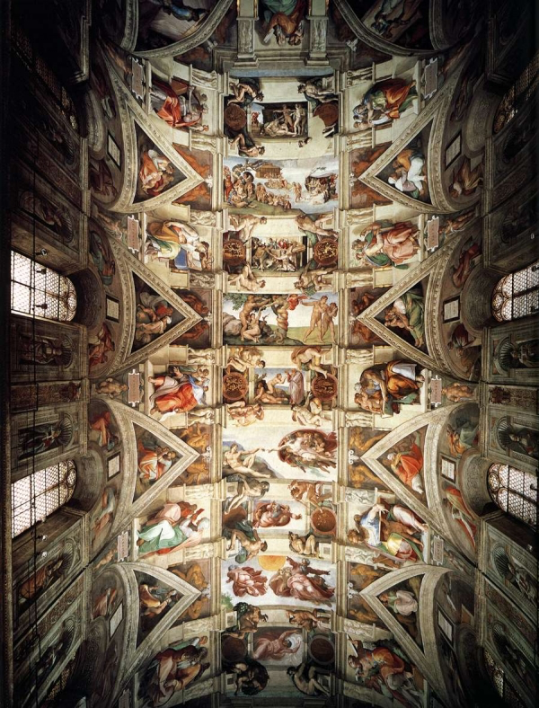 미켈란젤로 천장화 (중간에 유명한 천지창조 그림이 있다)