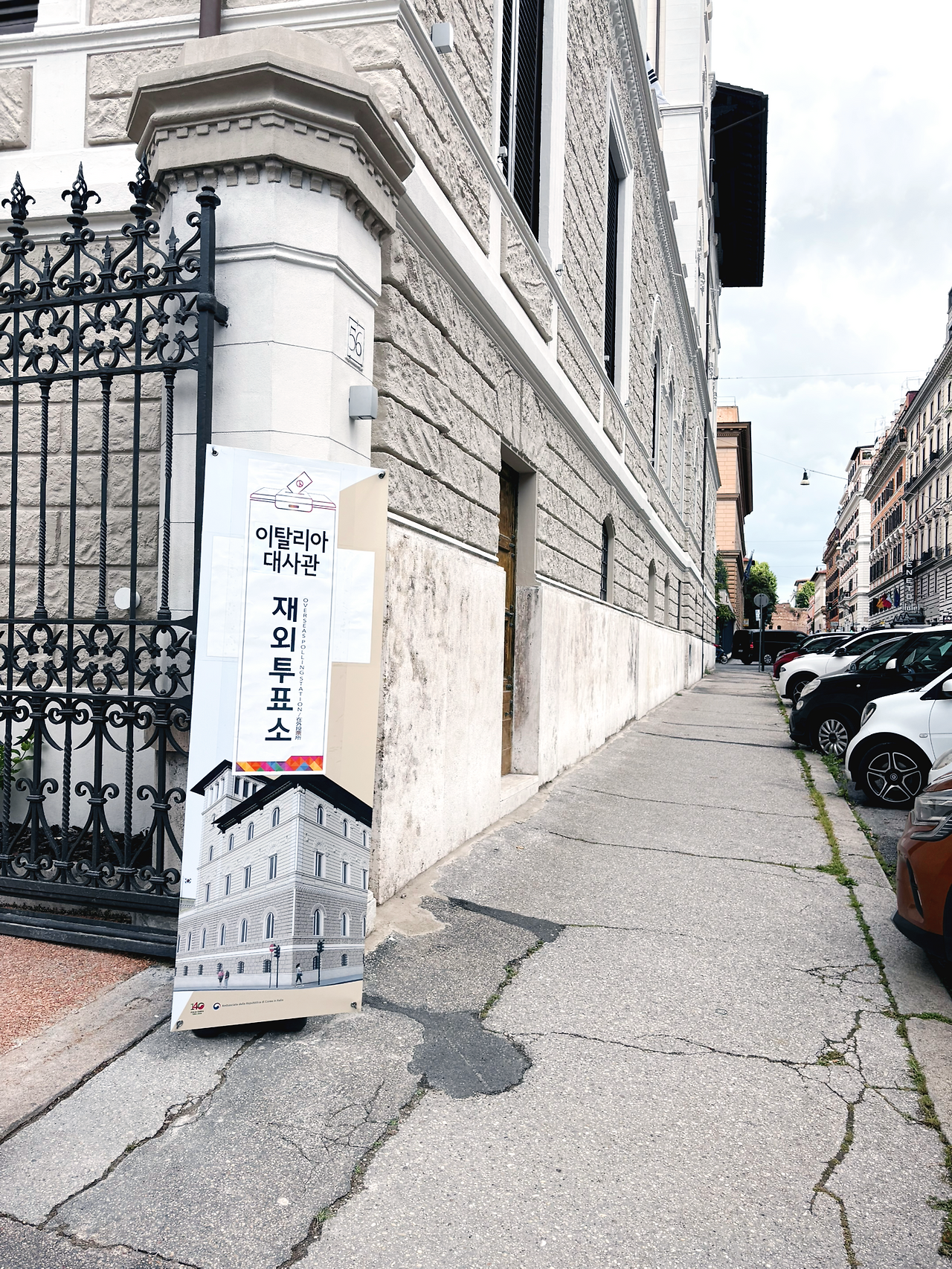 오늘은 재외국민 투표를 하는 날이다. 여행하면서 대선 일정이 나왔고, 재외국민 투표는 5월 20일부터 25일까지라 이때쯤은 로마에 있을 것을 예상해 로마 이탈리아 대사관으로 신청을 미리 해두었다. 외국에서 투표를 하는 것은 처음 하는데 이탈리아 대사관에서 하는 투표도 의미가 있었다. 투표소는 한가한 편이었다. 그래도 투표하러 오는 사람들이 조금씩 보였다. 사전투표랑 거의 절차는 같고, 봉투에 투표지를 넣어서 밀봉하는 것 말고는 다른 게 없었다. 이 절차는 아마 다른 지역에서 사전투표하면 동일하게 하는 것 같으니 사실 따지고 보면 본인 지역구 아닌 다른 지역에서 투표하는 거와 본질적으로 같다. 소중한 한 표를 행사할 수 있어서 너무 다행이다.