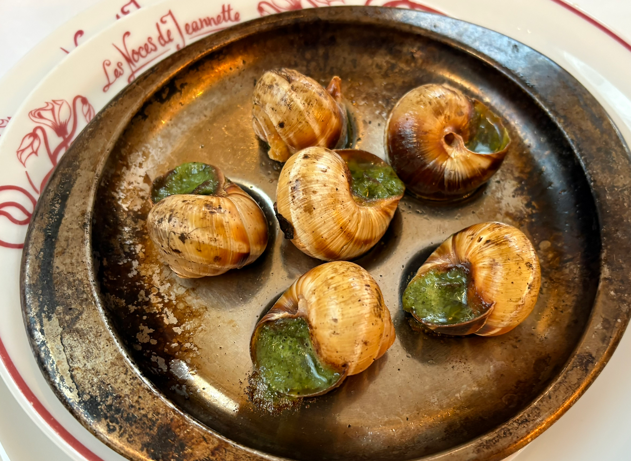달팽이 요리는 메인 요리 나오기 전에 먹는 전채음식이다. 한국에서 많이 먹는 골뱅이와 비슷하다. 다른 점은 달팽이를 버터, 마늘, 파슬리 등으로 양념을 해 먹는다. 사실 달팽이 요리는 소스 맛으로 먹는다. 달팽이 요리를 시키면 달팽이를 고정하는 기구와 달팽이를 꺼내는 작은 포크를 준다. 달팽이를 기구로 잡고 포크로 쏙 빼내서 먹으면 된다. 물론 다 개인적인 취향 차이가 있겠지만 프랑스 여행 가서 한 번쯤 먹을 만한 음식이지만 두고두고 생각난다 이런 유의 음식은 아니다.