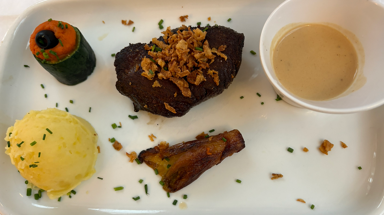 그리고 메인 메뉴로는 여러 고기 소, 돼지, 오리, 닭 스테이크를 먹을 수 있다. 이번 여행에서 가장 맛있게 먹은 음식 중에 하나인 것은 돼지 등뼈 스테이크였다. 어떻게 조리를 했는지 아주 두꺼운 돼지가 완벽하게 익었고 같이 준 소스는 너무나 맛있었다. 두 번째로 맛있었던 것은 소고기 스테이크였는데 겉은 아주 바삭하고 안은 촉촉했고 곁들여서 먹는 가니시와 소스가 아주 맛있었다.