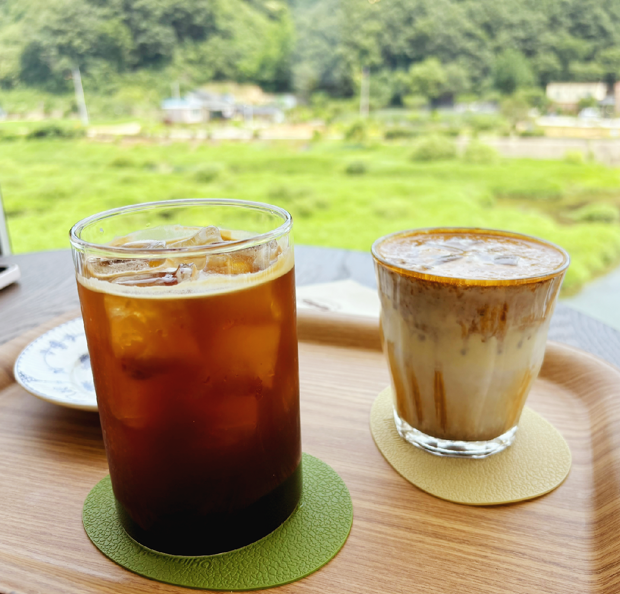 홍천강이 시원하게 보이는 뷰를 자랑하는 홍천읍에 있는 카페에 가봤다. 외관은 그냥 평범해 보이는데 매장 내부 인테리어는 신경을 많이 쓰신 게 티가 많이 났다. 2층에 올라가면 홍청강 뷰를 좀 더 잘 볼 수 있다. 옥상 테라스도 있는데 그곳에는 음식을 먹을 수는 없고 잠깐 앉아있는 것만 가능하다. 화장실도 인테리어가 이쁘고 깨끗했다.