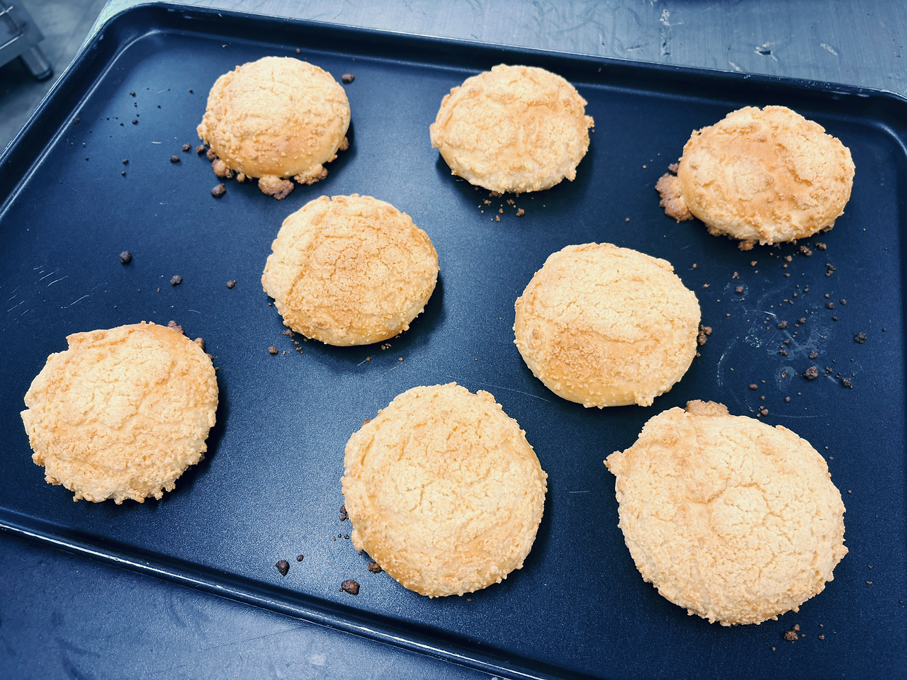 처음 만들었을 때는 소보로 토핑이 완전히 떡져버렸다. 반죽 위에 물을 살짝 묻히고 고명을 충분히, 고르게 올려야 하는데 막상 해보면 그게 말처럼 쉽지 않다. 두 번째 기회가 왔을 때는 떡질까 봐 겁이 나서 덜 치댔더니, 이번엔 고명이 제대로 형성되지 않고 양도 부족해서 소보로 느낌이 잘 살아나지 않았다.