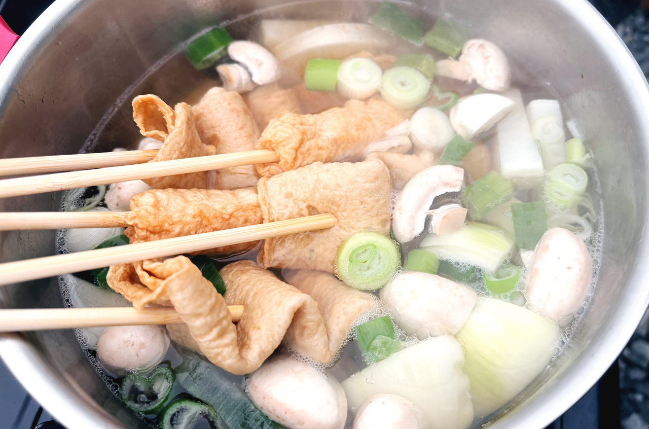 이번엔 제대로 된 양꼬치를 준비했다. 자동으로 돌아가는 기계는 없지만, 손으로 하나하나 돌려가며 구우니 그 손맛 덕분인지 훨씬 맛있었다. 양꼬치만 먹기엔 조금 아쉬워 어묵탕도 함께 끓였다. 어묵탕에는 이번에 재배한 무도 큼지막하게 들어갔다. 무는 아직도 짱짱하게 남았다. 쌀쌀한 날씨에 뜨끈한 어묵탕과 바삭하게 구운 양꼬치를 함께 먹으니, 이런 게 바로 소소한 행복이라는 생각이 들었다.