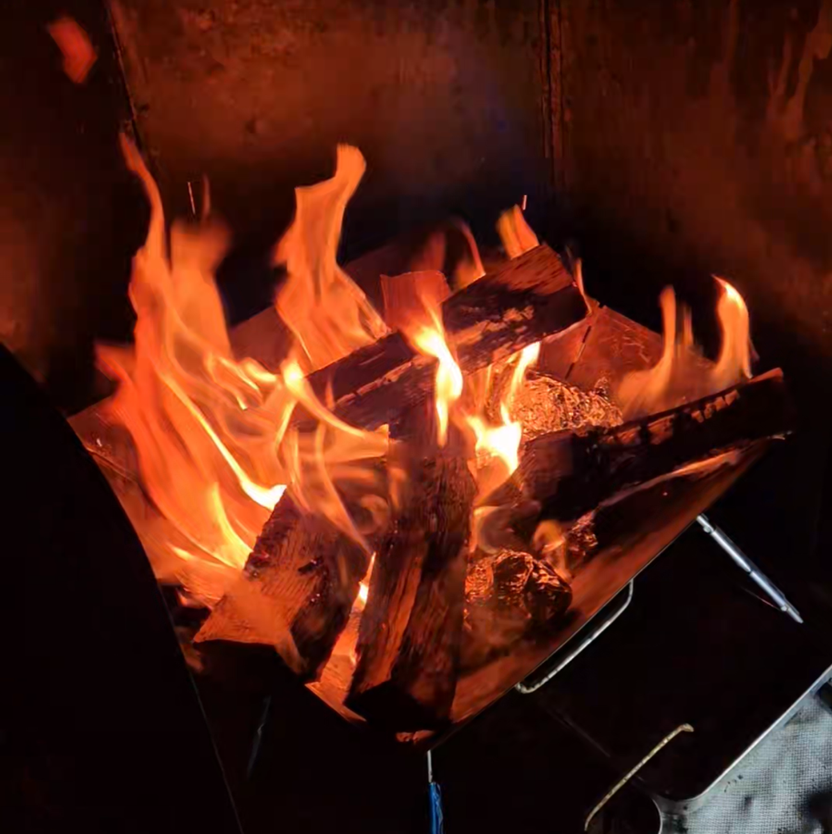 불멍은 그저 불을 바라보기만 해도 마음이 편해지는데, 손에 따끈한 고구마 하나까지 쥐고 있으니 그 온기가 더 오래 머무는 듯하다. 아무 말 없이 불빛을 바라보며 고구마 한 조각씩 나눠 먹는 그 순간이 작은 사치처럼 느껴졌다. 역시 불멍에 구워 먹는 음식 하나 얹으면 그 시간이 훨씬 더 따뜻해진다.