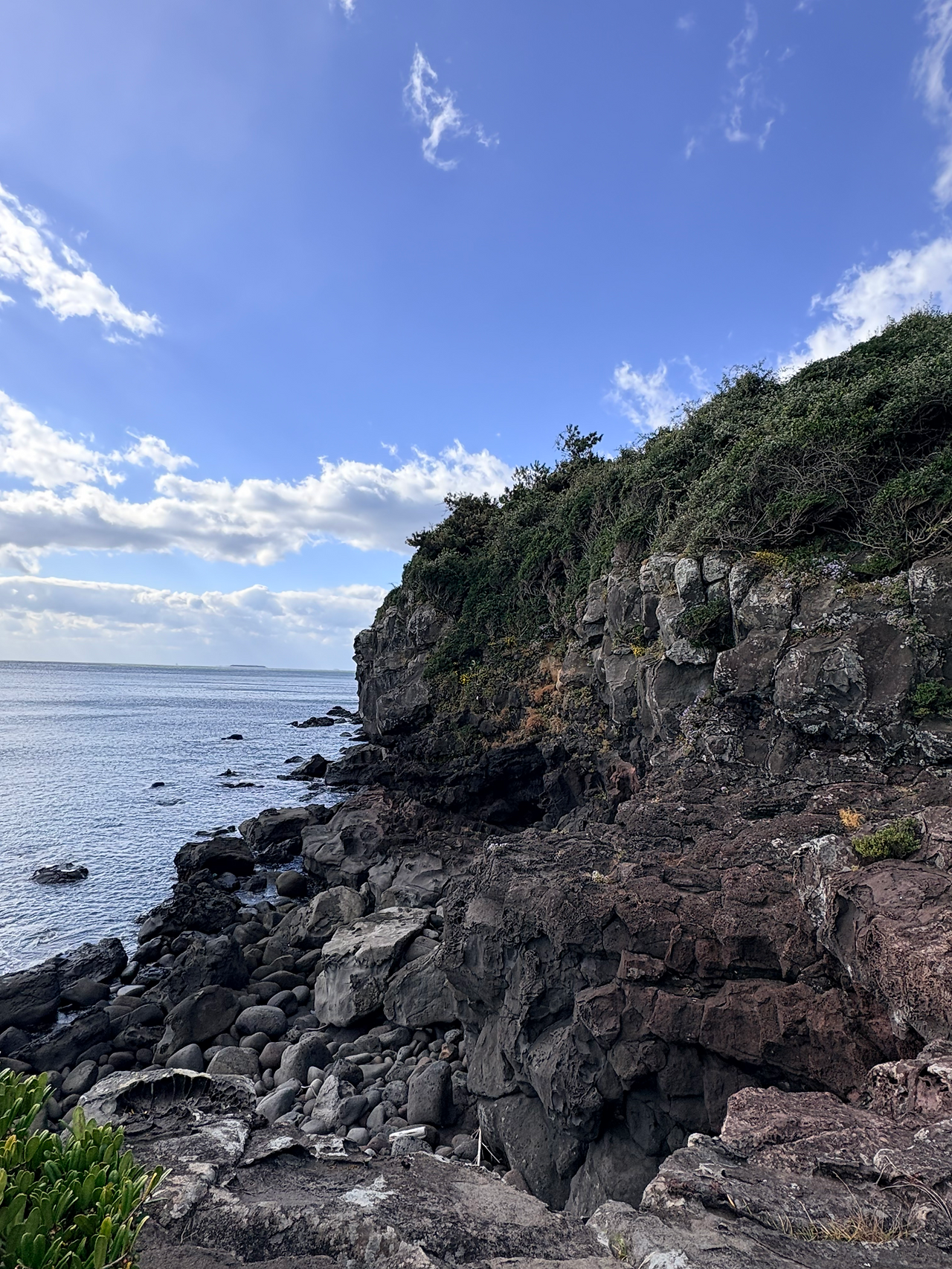 잘 정비된 나무 데크를 따라 걷다 보면 짙푸른 바다와 검은 현무암 절벽이 어우러진 풍경이 펼쳐진다. 파도가 바위에 부딪치며 내는 소리도 인상적이고, 길 자체가 완만해 부담 없이 산책하기 좋다. 중간중간 마련된 전망대에 서면 탁 트인 바다를 바라볼 수 있어 잠시 멈춰 서게 된다.