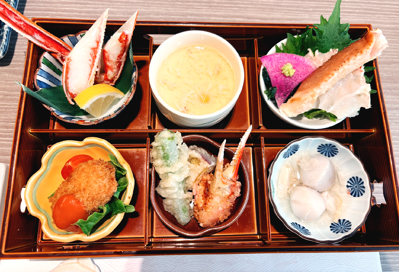 우리는 점심 특선 코스를 주문했는데, 다양한 게요리를 조금씩 맛볼 수 있어 일본에서의 마지막 식사로 더없이 만족스러웠다. 한국에서는 쉽게 접하기 힘든 요리를 현지에서 비교적 합리적인 가격으로 즐길 수 있다는 점이야말로 여행의 큰 즐거움 중 하나라는 생각이 들었다.