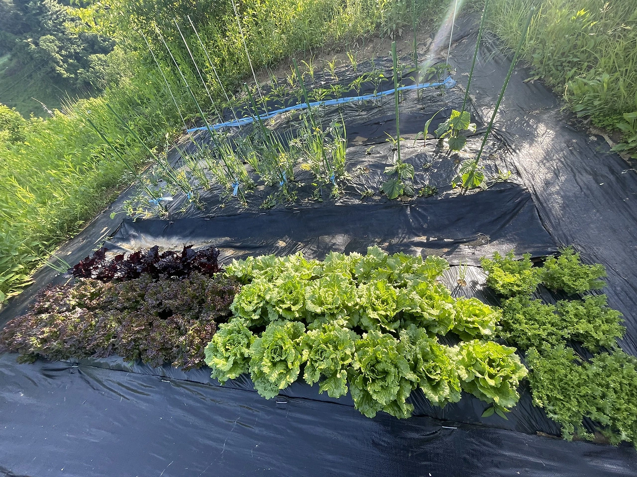 그런대로 시간이 지나면 삼겹살 먹을 때 바로 밭에 나가서 조금 잎을 따주면 싱싱한 상추를 먹을 수 있다. 그럴 때면 정말 5도 2촌 하기 잘했다는 생각을 하게 된다. 상추 잎 하나 먹는 게 이렇게 힘든 일 이라니. 그리고 텃밭 일은 해가 있을 때 하게 되면 너무나 덥고, 땀이 비 오듯 흐른다.
