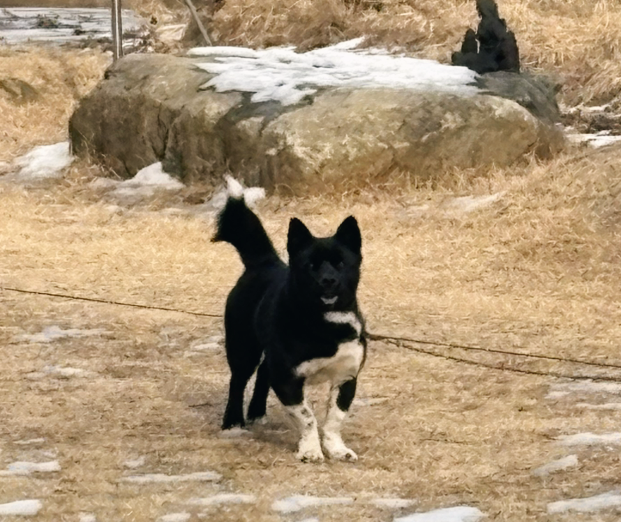 2촌 옆집엔 검은색 강아지가 있다. 옆집 강아지는 개집에 묶여있지 않고 마당을 가로지르는 리드 줄이 연결되어 있어 훨씬 활동 반경이 넓게 움직일 수 있도록 되어있다. (견 세상도 좋아지는구나)