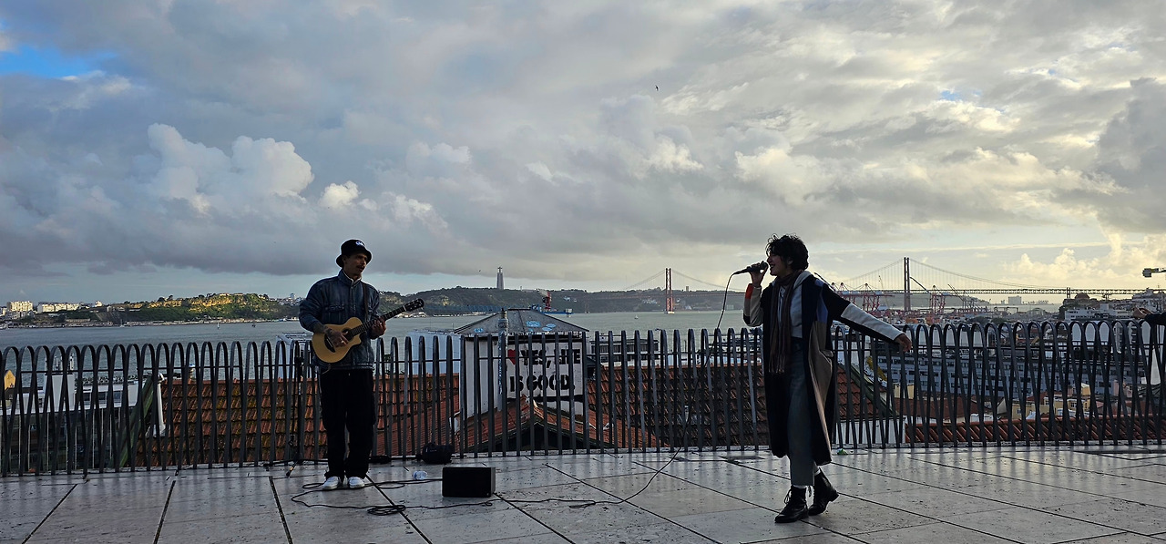 이미 공연을 하고 있던 허스키한 목소리의 여성 보컬이 부르는 파두가 바람을 타고 흘러왔다. 그 애잔하면서도 깊은 선율이 황혼빛과 어우러지며, 마치 이 도시의 영혼을 직접 들려주는 듯했다.