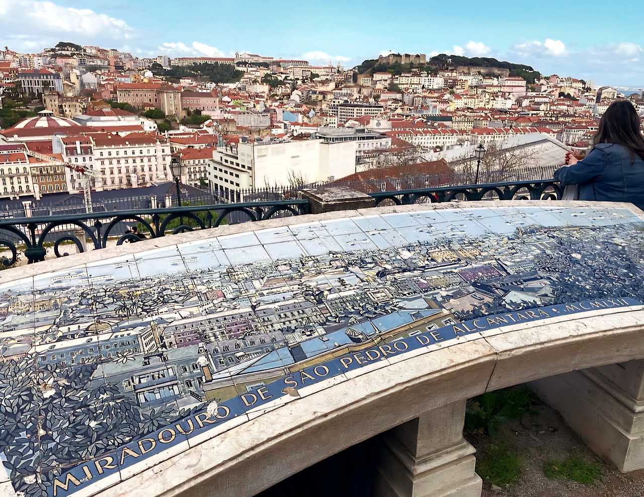 전망대에 서자, 말 그대로 도시 전체가 아래로 펼쳐졌다. 상 조르즈 성이 고요히 도시를 내려다보고 있었고, 그 아래로는 바이샤 지구의 정돈된 거리들이 바둑판처럼 펼쳐졌다. 그 끝에서 테주강은 넓고 느릿하게 흘렀고, 그 위를 가로지르는 4월 25일 다리는 서서히 뚜렷하게 보이기 시작했다. 도시의 구조와 역사가 한 폭의 풍경화처럼 시야 안에 담긴다.