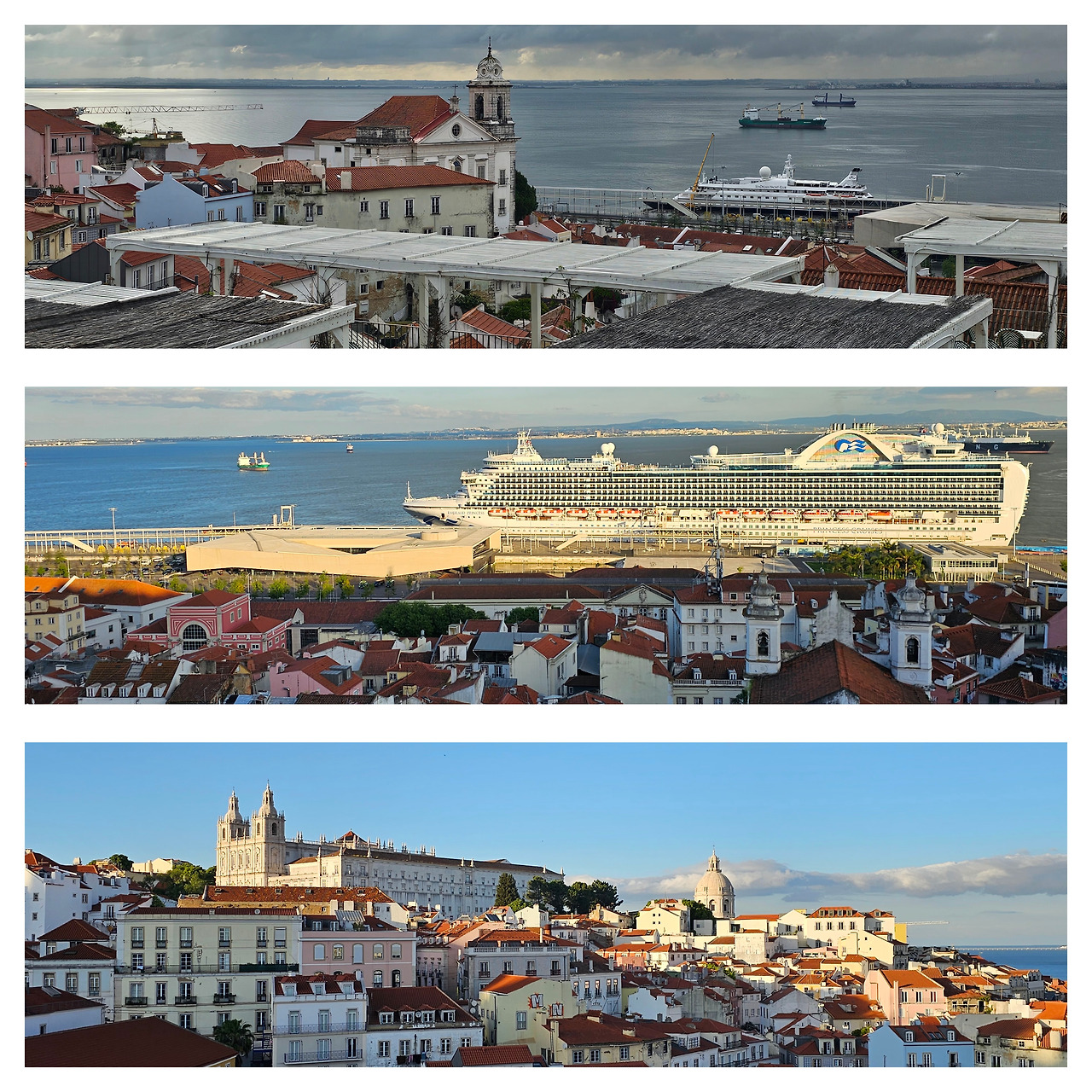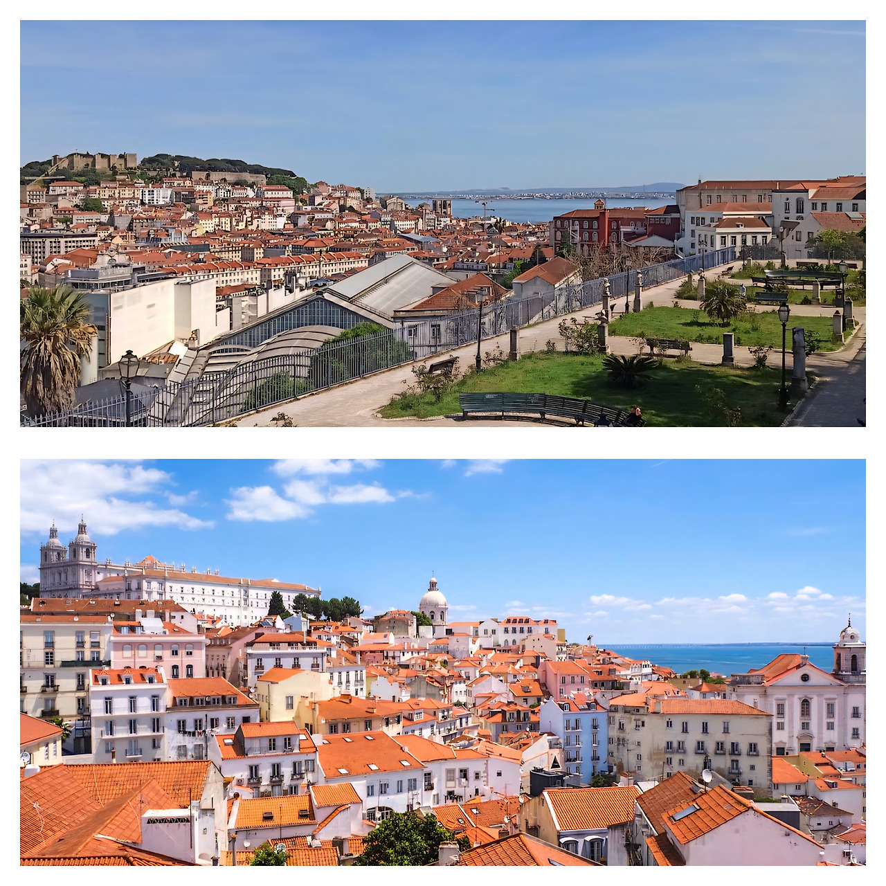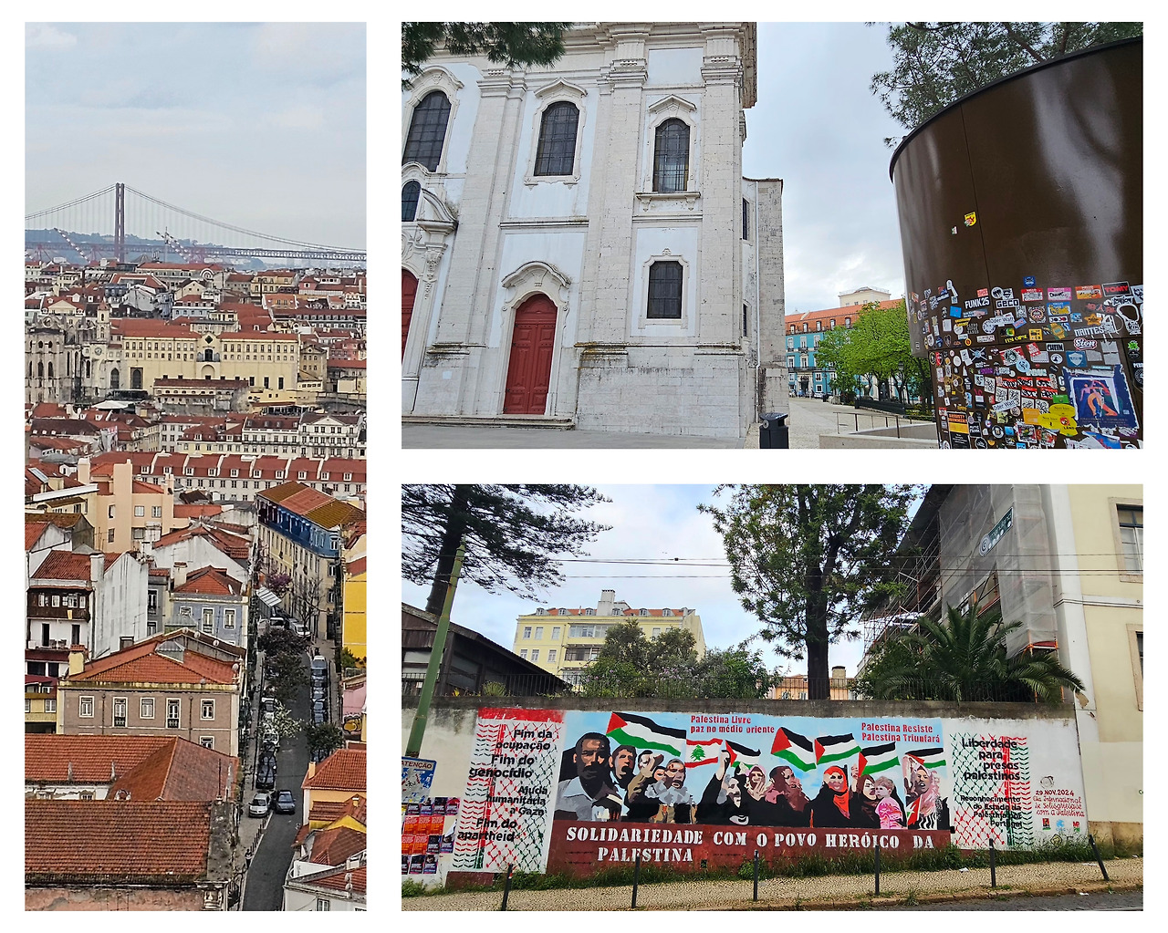 저 멀리 4월 25일 다리가 붉은 철골 구조로 테주강을 당당히 가로지르고, 강 건너편 언덕 위의 크리스토 레이 예수상이 두 팔을 벌려 도시 전체를 품에 안고 있는 모습이 장관이었다.