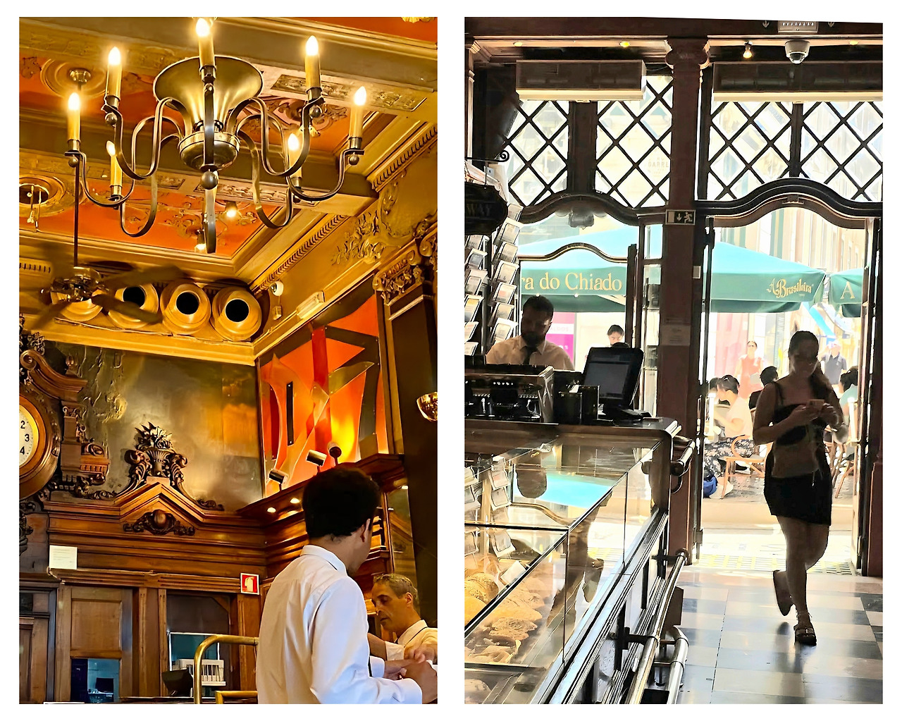 문을 열고 살며시 안을 들여다보니, 아르누보 양식의 장식이 카페 내부를 감싸고 있었다. 짙은 나무 벽면과 오래된 대리석 바닥, 은은한 커피 향이 한 세기가 넘는 시간의 무게를 고스란히 전해주었다. 과거의 문학과 사상이 이 공간에서 어떻게 꽃 피웠는지 상상해 보았다. 이곳은 여전히 리스본의 문화적 심장부 역할을 하고 있었다.