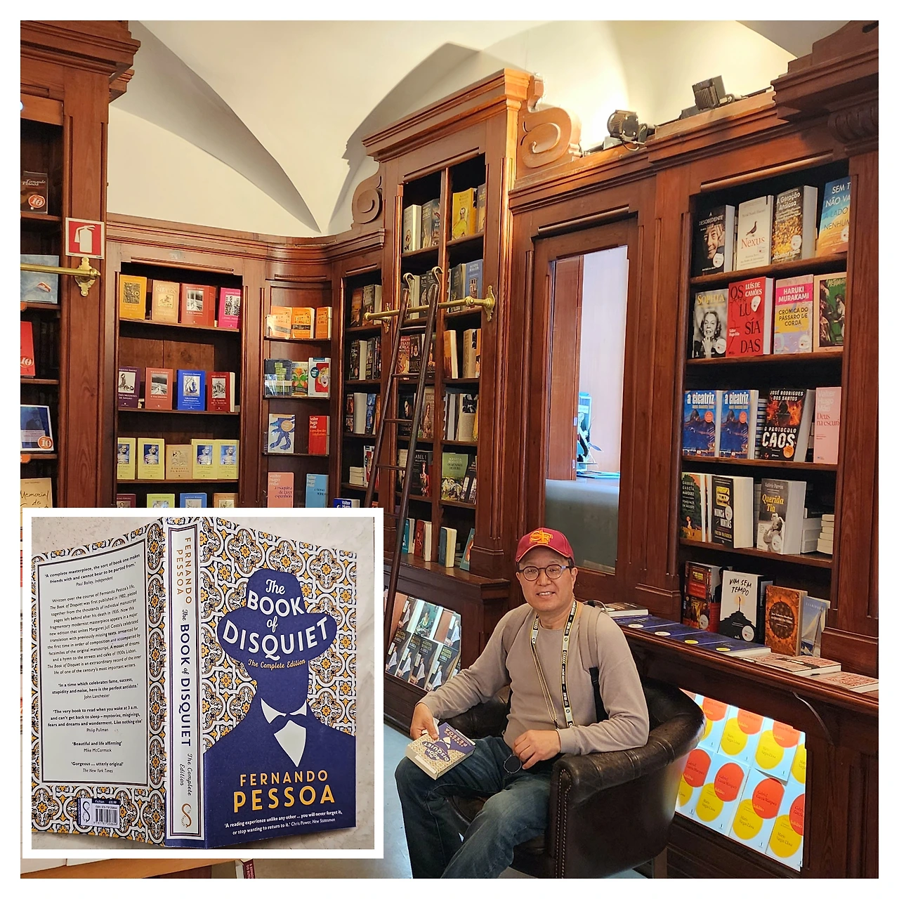 나는 이곳의 추억을 오래 간직하고 싶어 페소아의 대표작품을 한 권 구입했다. '불안의 서, The Book of Disquiet'였는데 이 책을 그냥 산게 아니라, 포르투갈 문학의 숨결과 장소의 역사까지 함께 담아 오고 싶은 마음에서였다. 페소아의 불안과 내적 고독이 담긴 글들을, 그가 살던 도시에서 직접 구한 책으로 읽는 건 확실히 다르게 다가올 것이다. 물론 아직 읽기를 시작하지 않았다. 이 책은 한 번에 쭉 읽기보다는, 무작위로 펼쳐서 몇 문장을 곱씹는 게 더 어울린다고 한다. 마치 리스본 골목을 걷다가 갑자기 열린 작은 광장을 발견하는 것처럼, 읽는 순간마다 그때그때 다른 울림이 찾아올 것을 기대하면서.