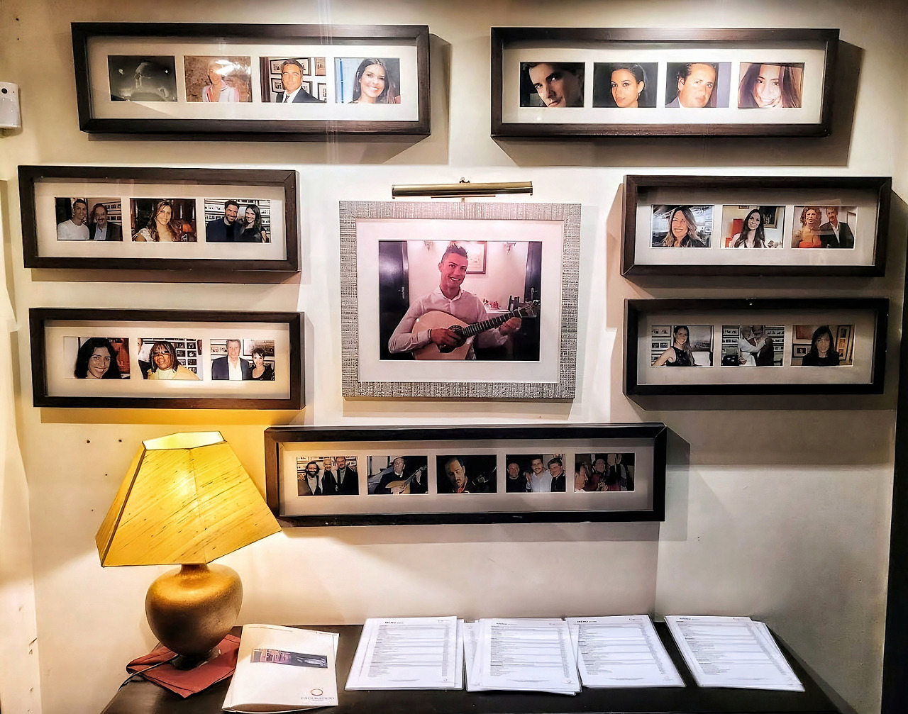문을 열고 들어서니 바깥세상의 소란이 일순간 사라지고 시간이 멈춘 듯한 고풍스러운 낭만에 휩싸였다. 높은 아치형 천장과 묵직한 원목 테이블, 벽면을 장식한 파두 거장들의 흑백사진은 오랜 역사의 흔적을 그대로 담고 있었다. 은은한 촛불과 각 테이블 위에 놓인 작은 조명이 따뜻하면서도 아늑한 분위기를 더해, 마치 비밀스러운 지하 공간에 초대된 듯한 친밀감을 자아냈다. 관광객과 현지인이 뒤섞인 이 공간은 소란이 아닌, 파두에 대한 깊은 경외심과 집중이 흐르는 신성한 무대 같았다.
