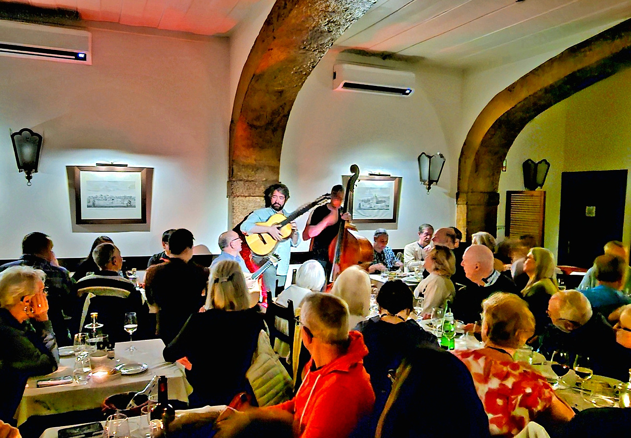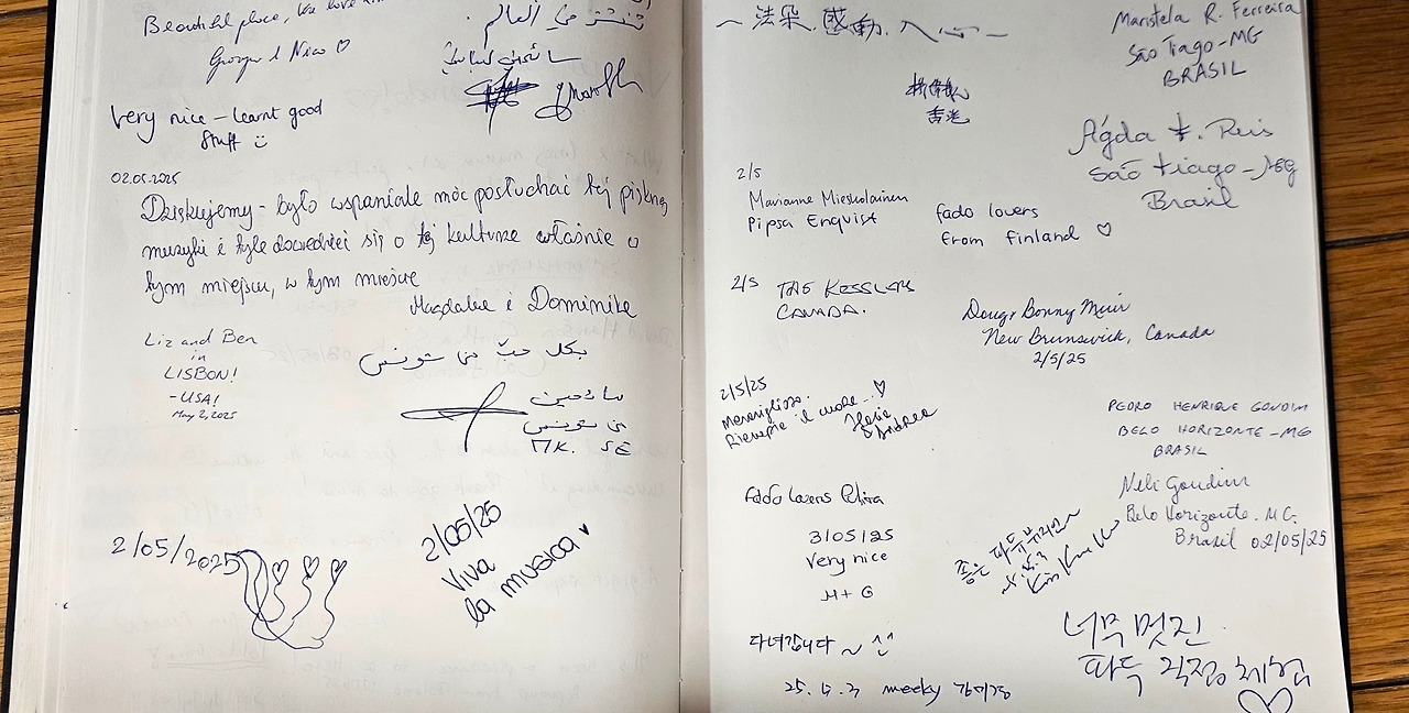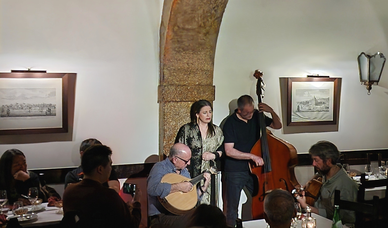 우리는 한편의 조용한 자리로 안내받아 자리를 잡았다. 15분씩 세 팀의 파두 공연이 거의 한 시간 동안 이어졌다. 식사가 무르익어갈 즈음, 조명이 서서히 낮아지고 무대 위에 파디스타와 기타리스트들이 모습을 드러냈다. 포르투갈 기타의 청아하고 애절한 음색과 클래식 기타의 부드러운 화음이 조화를 이루며, 리스본의 밤을 위한 서막을 열었다.