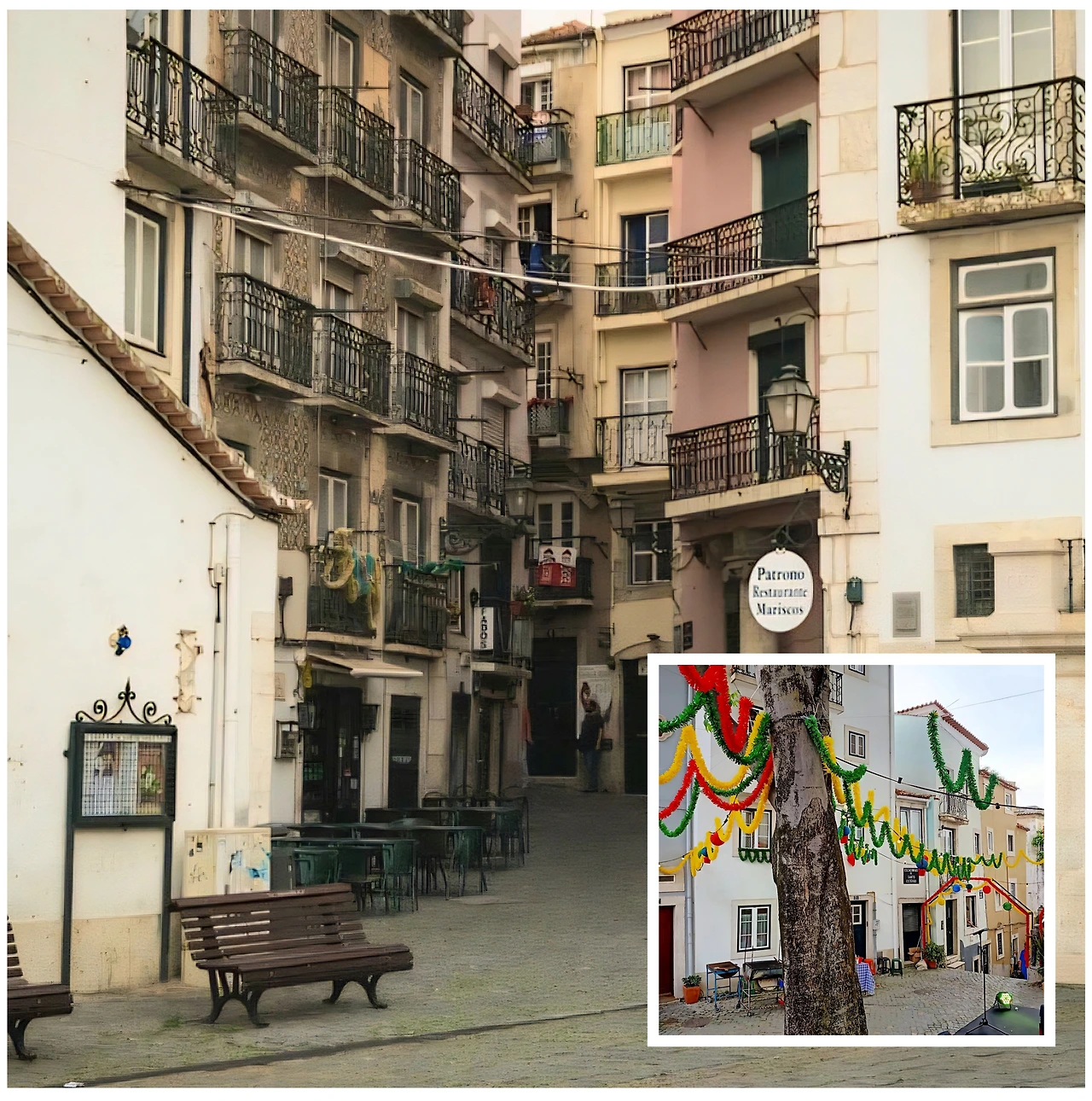 이게 바로 알파마의 매력이 아닐까. 계획된 길을 걷다가도 예상치 못한 예술 작품을 만나고, 그 속에서 잠시 멈춰 생각하게 되는 것. 파두 식당으로 가는 길에서 우연히 마주친 이 벽화는 리스본의 밤이 선사한 또 하나의 선물이었다.