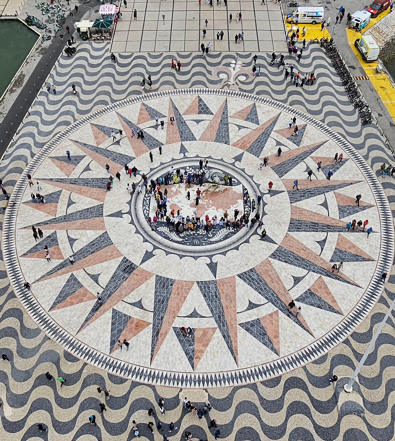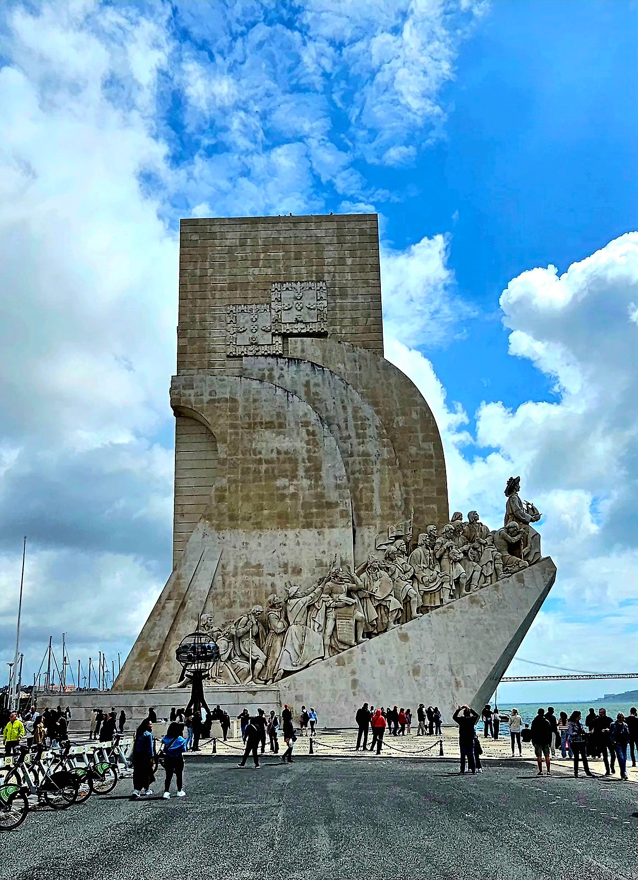 정면에는 엔히크 왕자가 당당히 서 있고, 그 뒤로 바스쿠 다 가마, 마젤란, 바르톨로메우 디아스, 페드루 알바레스 카브랄 등 대항해시대의 인물들이 줄지어 있다. 지도 제작자와 시인, 그리고 유일한 여성인 필리파 랭커스터 왕비까지 포함된 이 군상은, 세계로 향한 포르투갈의 집단적 열망을 형상화하고 있다.