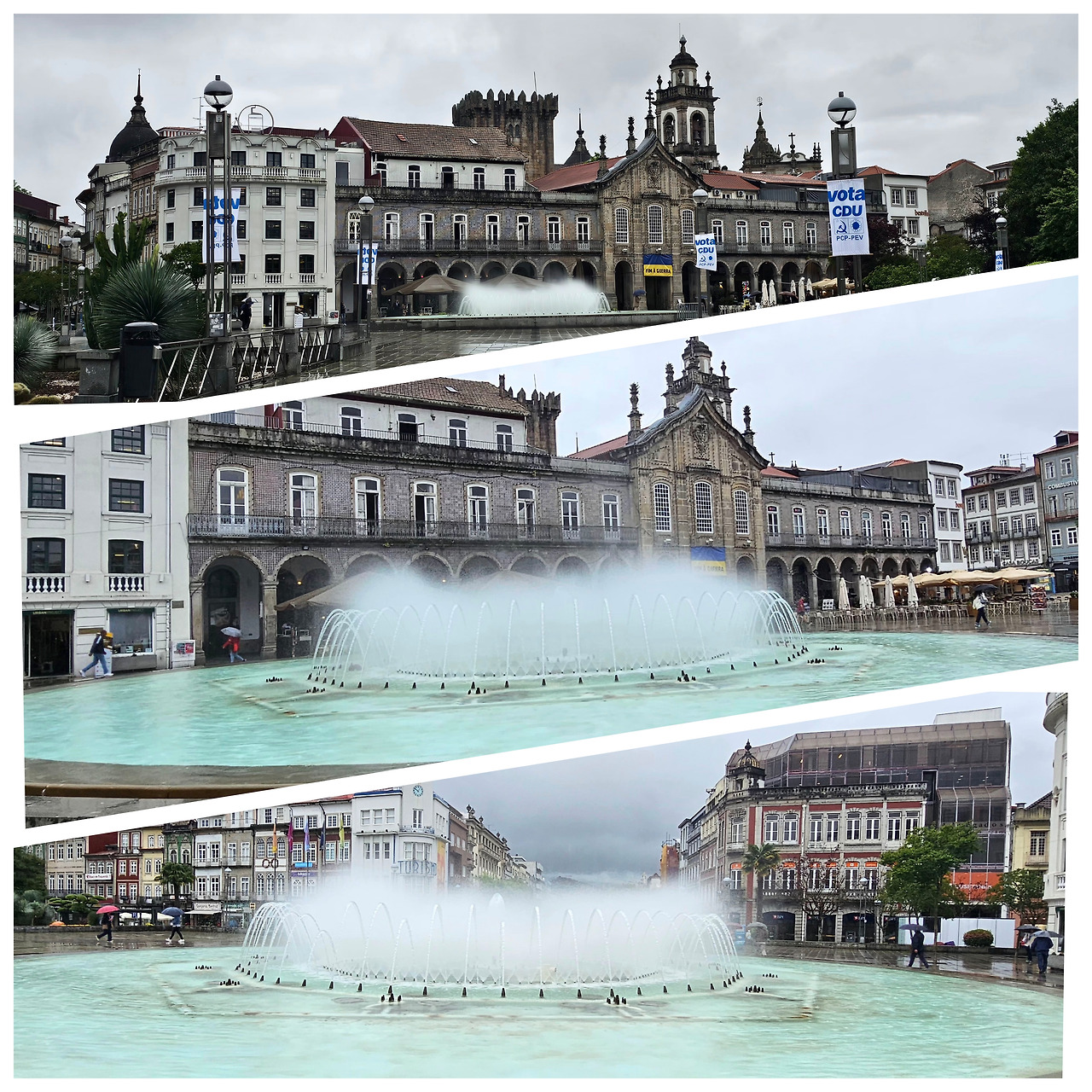 이윽고 헤푸블리카 광장(Praça da República)에 들어서니, 그칠 줄 모르는 빗속에서도 도시의 맥박은 여전했다. 광장 중앙의 분수가 부드러운 물줄기를 뿜어 올리며 주변에 안개 같은 잔 물보라를 흩뿌렸고, 그 사이로 희미한 빛이 스며들어 환상적인 장면을 연출했다. 우산을 든 사람들이 분수 주변을 지나다니고, 카페테라스에서는 김이 나는 커피가 빗방울과 함께 향기를 퍼뜨렸다. 커피 한 잔을 앞에 두고 이 모든 풍경을 바라보니, 브라가의 일상이 차분하면서도 힘차게 다가왔다.